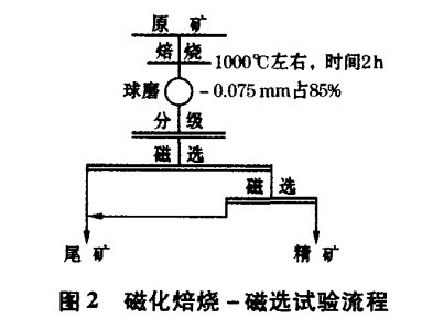 磁化焙燒-磁選是處理弱磁性低品位鐵礦石的一種成熟工藝。該工藝一方面在焙燒過程中能脫除一部分雜質(zhì);另一方面通過磁選或磨礦磁選能獲得高品位的鐵精礦。