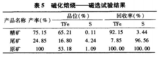 表5 磁化焙燒-磁選試驗(yàn)結(jié)果